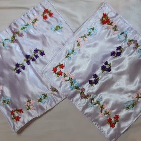 Purple satin table cover, embroided with colorful flowers, 35x33 cm